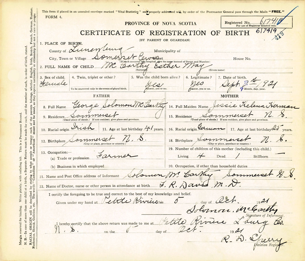 Nova Scotia Archives — https://archives.novascotia.ca/vital-statistics/birth/?ID=407538