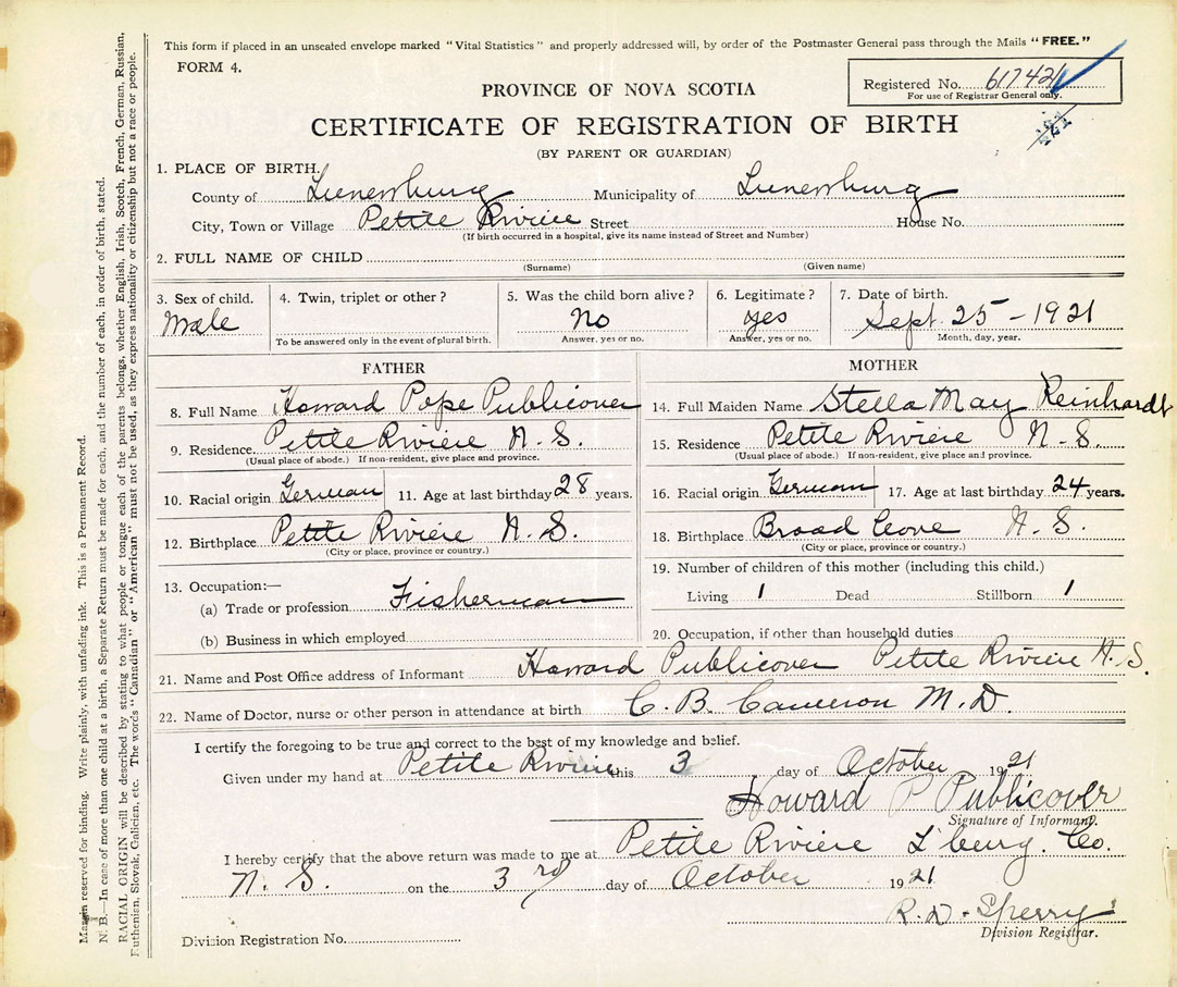 21. Name and Post Office address of Informant Howard Publicover Petite Riviere