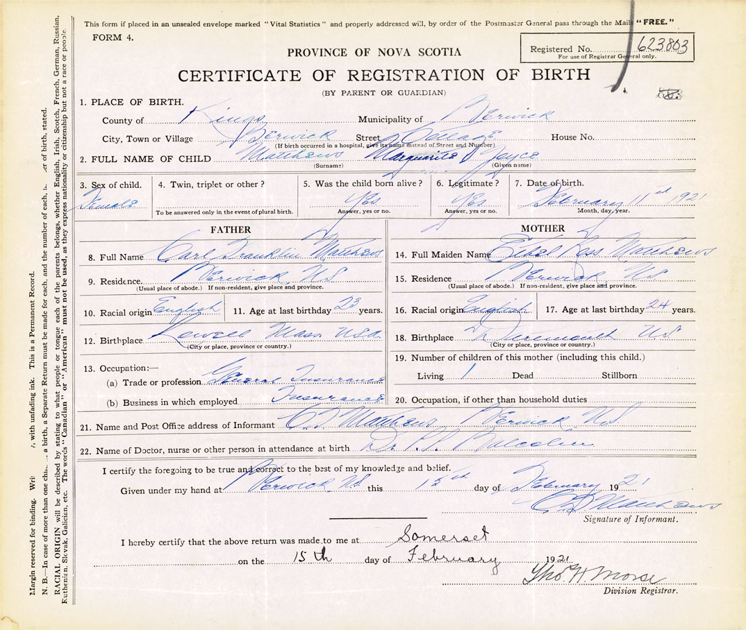 Nova Scotia Archives — https://archives.novascotia.ca/vital-statistics/birth/?ID=408157