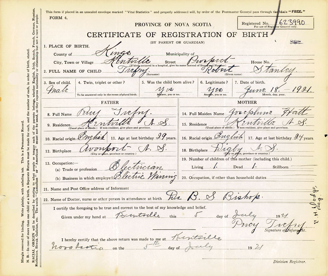 21. Name and Post Office address of Informant Percy Trefry Kentville