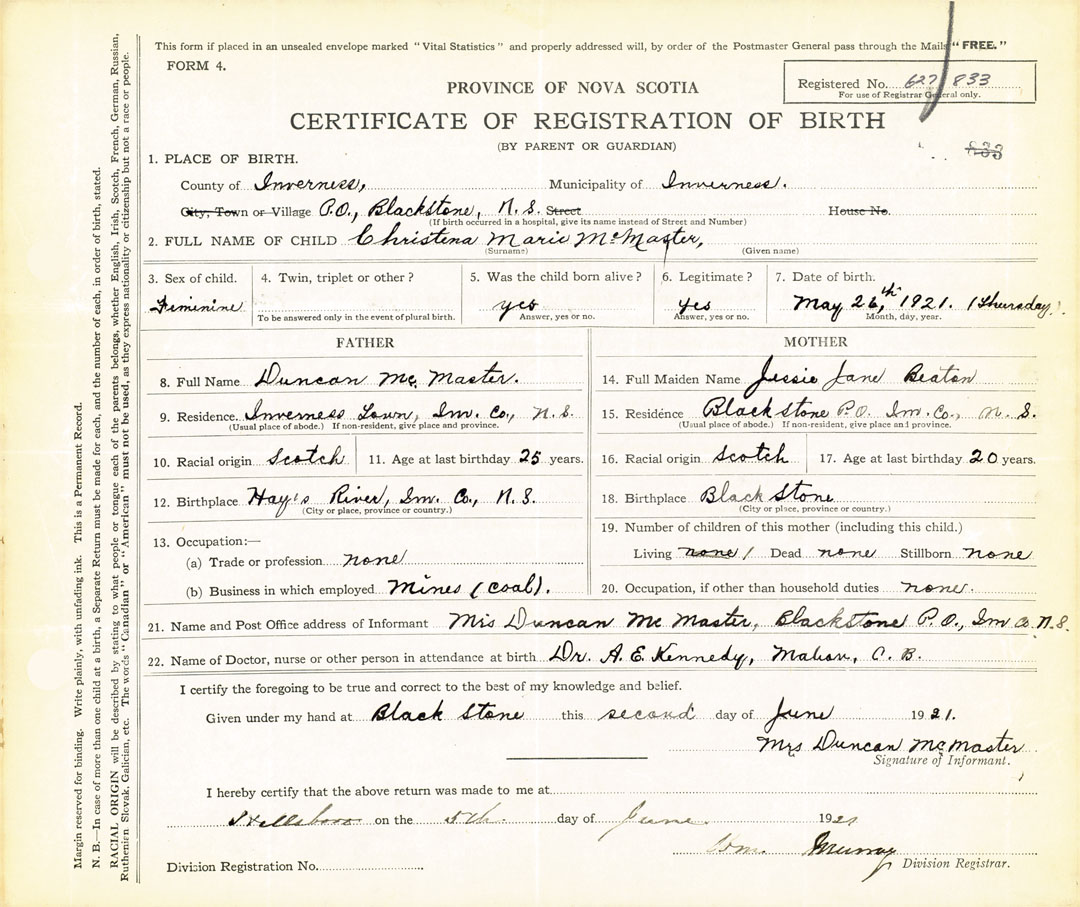 Nova Scotia Archives — https://archives.novascotia.ca/vital-statistics/birth/?ID=408781