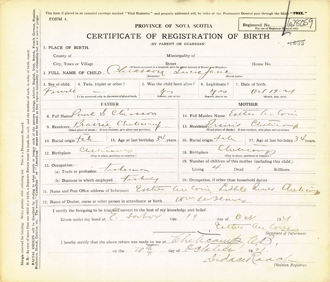 Nova Scotia Archives — https://archives.novascotia.ca/vital-statistics/birth/?ID=409006