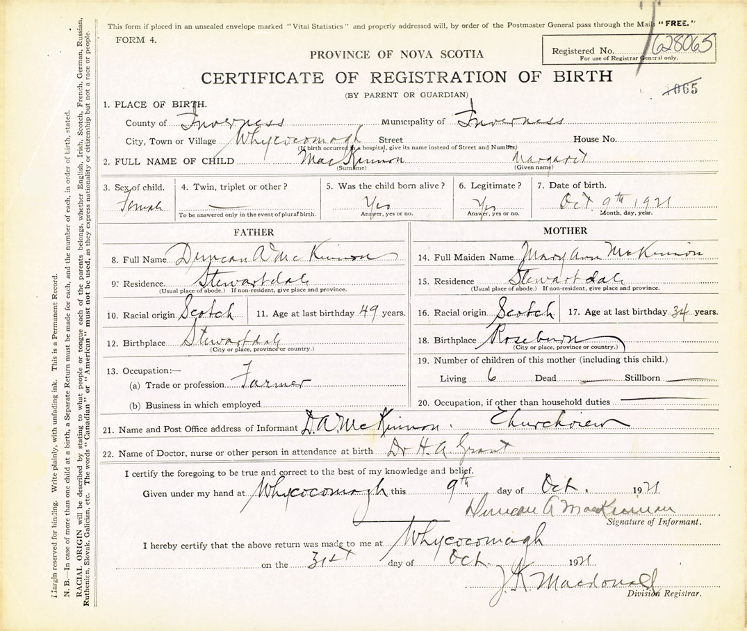 Nova Scotia Archives — https://archives.novascotia.ca/vital-statistics/birth/?ID=409012