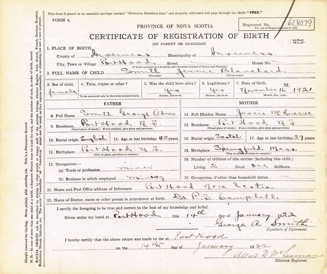 Nova Scotia Archives — https://archives.novascotia.ca/vital-statistics/birth/?ID=409026