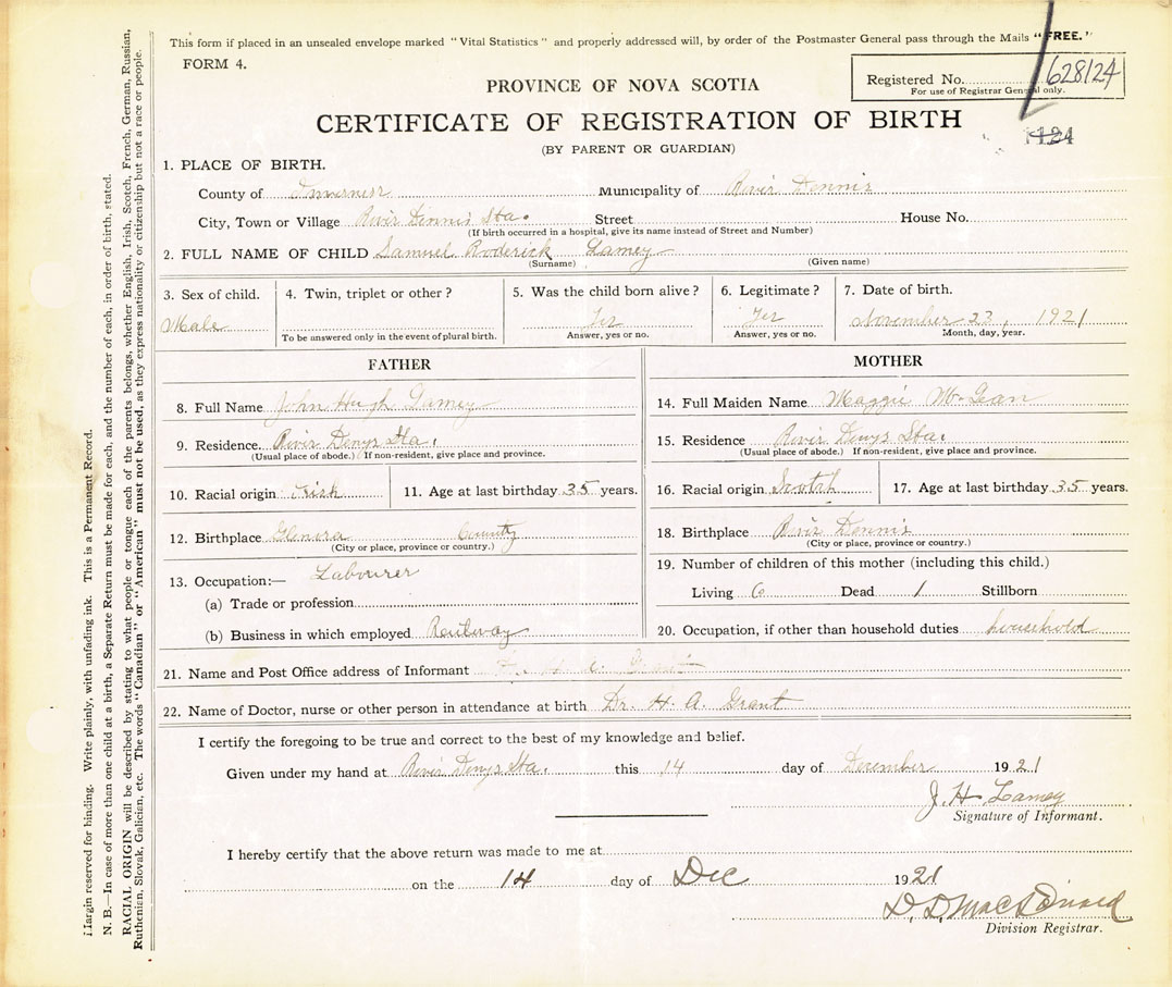 Nova Scotia Archives — https://archives.novascotia.ca/vital-statistics/birth/?ID=409070