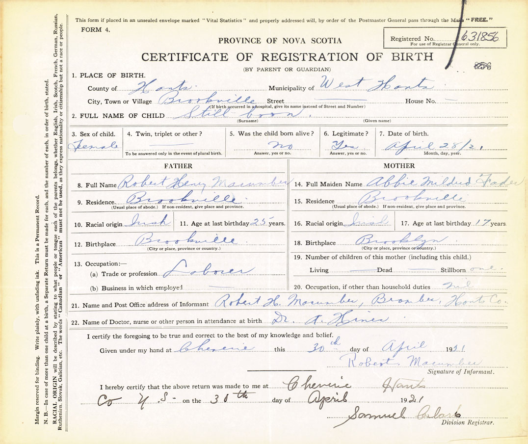 Nova Scotia Archives — https://archives.novascotia.ca/vital-statistics/birth/?ID=409325