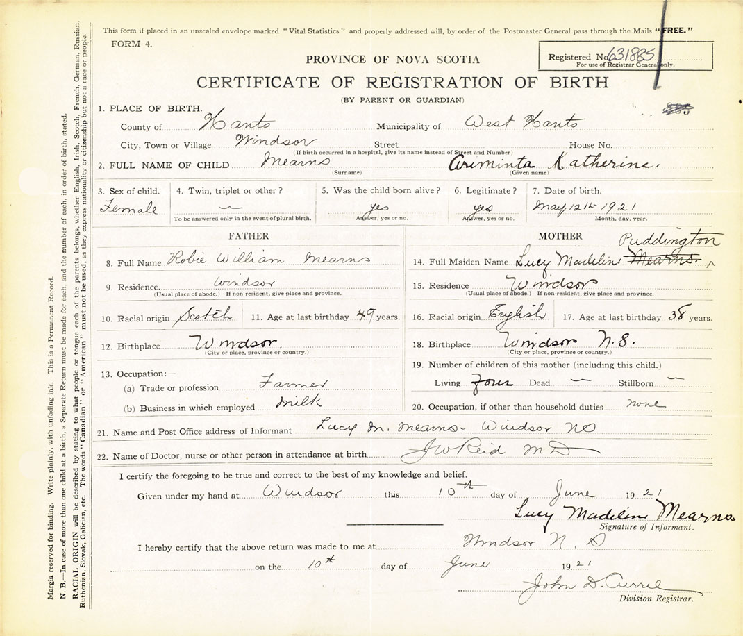 Nova Scotia Archives — https://archives.novascotia.ca/vital-statistics/birth/?ID=409354