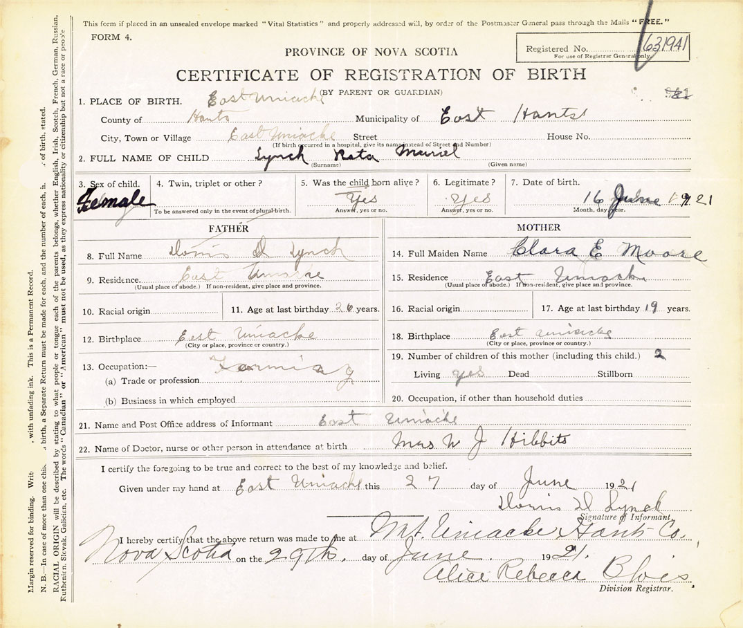 Nova Scotia Archives — https://archives.novascotia.ca/vital-statistics/birth/?ID=409410