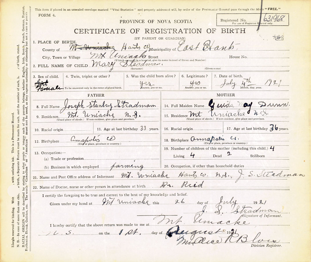 Nova Scotia Archives — https://archives.novascotia.ca/vital-statistics/birth/?ID=409437