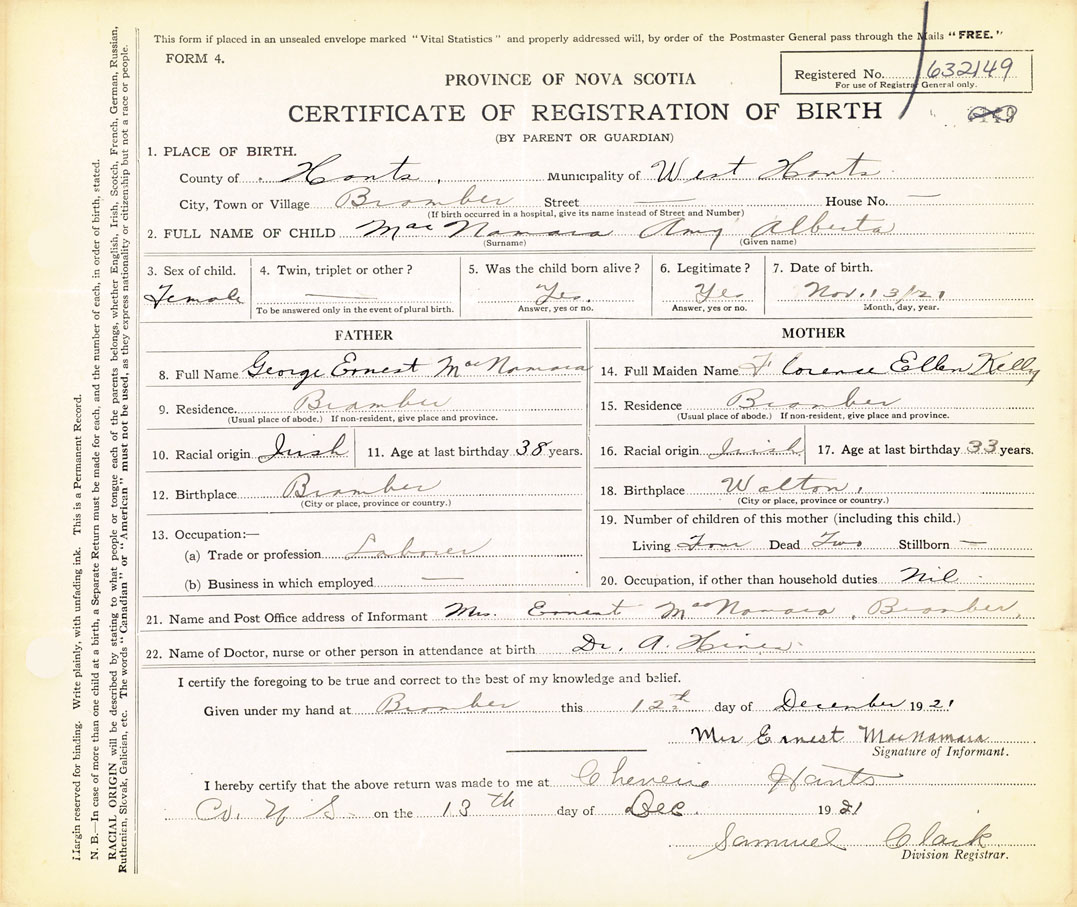 Nova Scotia Archives — https://archives.novascotia.ca/vital-statistics/birth/?ID=409618