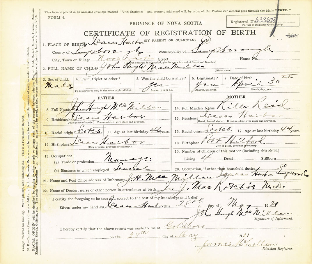 Nova Scotia Archives — https://archives.novascotia.ca/vital-statistics/birth/?ID=409788