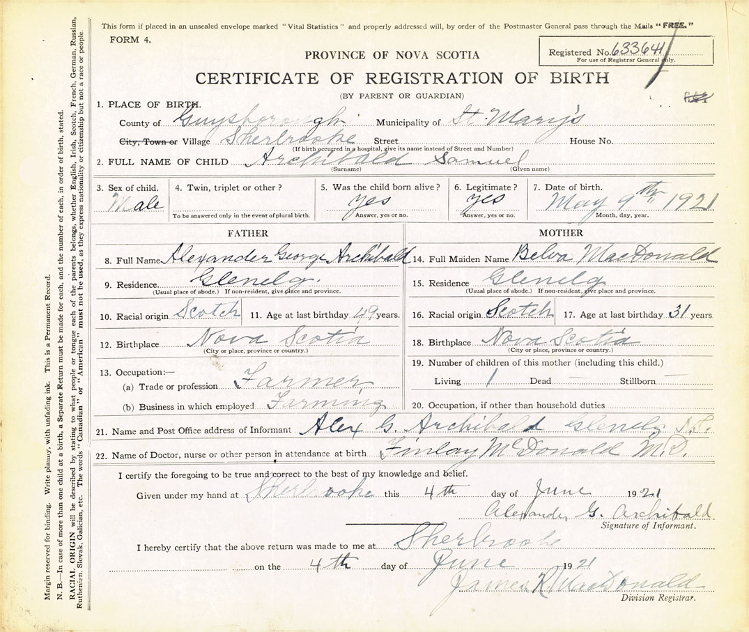 Nova Scotia Archives — https://archives.novascotia.ca/vital-statistics/birth/?ID=409821