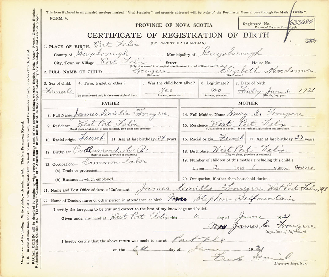 21. Name and Post Office address of Informant James Emille Fougere West Port Felix