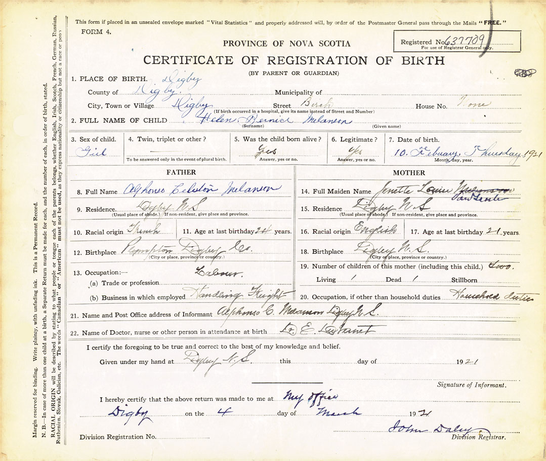 18. Birthplace Digby N.S.