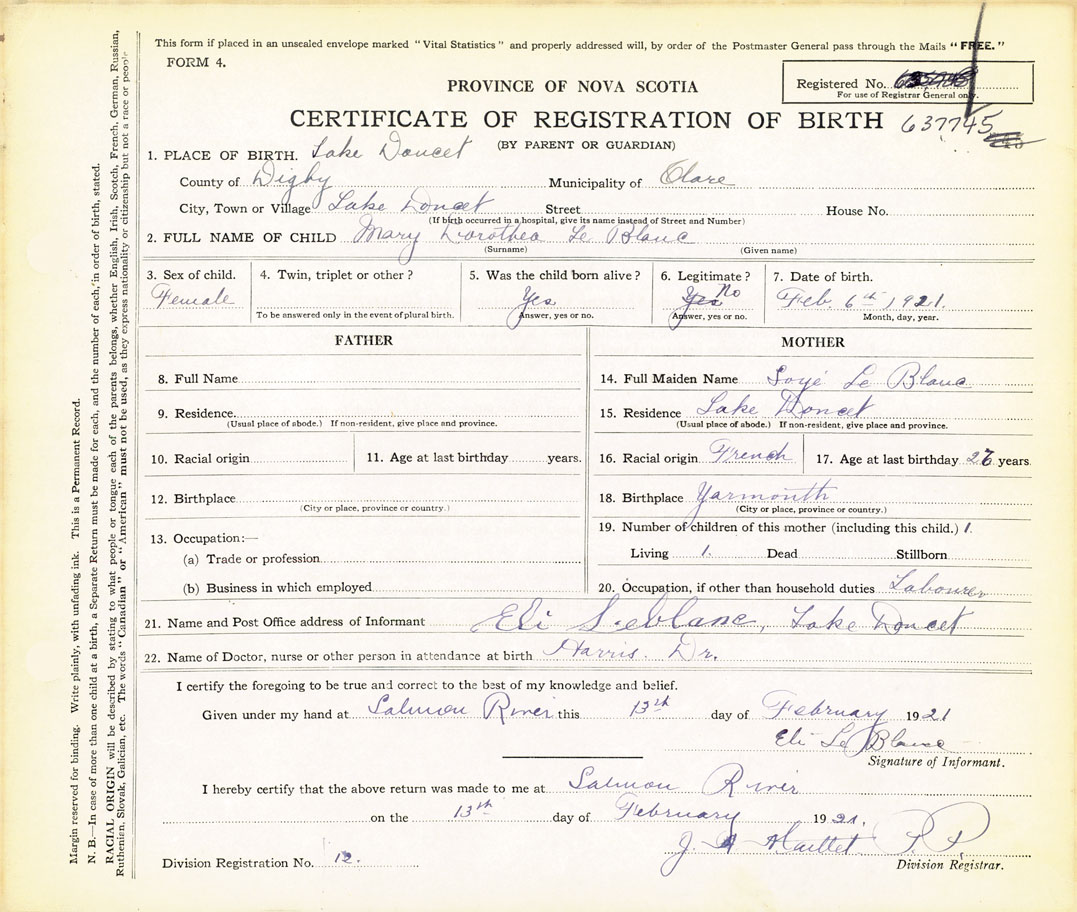 2. FULL NAME OF CHILD LeBlanc, Mary Dorothea