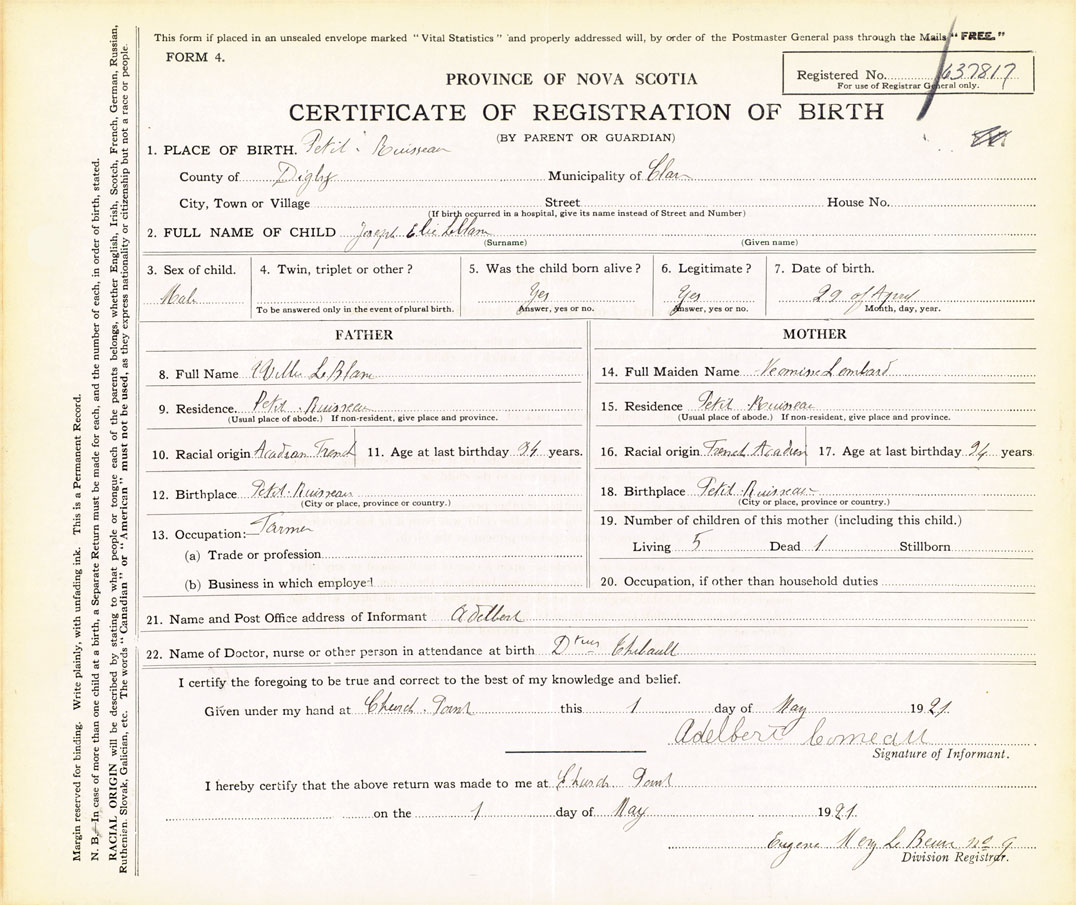 Nova Scotia Archives — https://archives.novascotia.ca/vital-statistics/birth/?ID=410197
