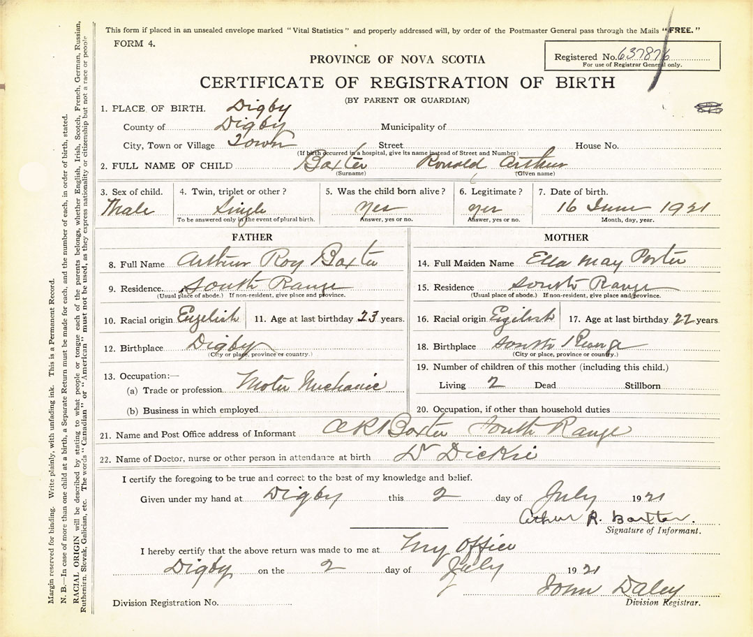 Male Birth Registration: Year: 1921 number: 63700876