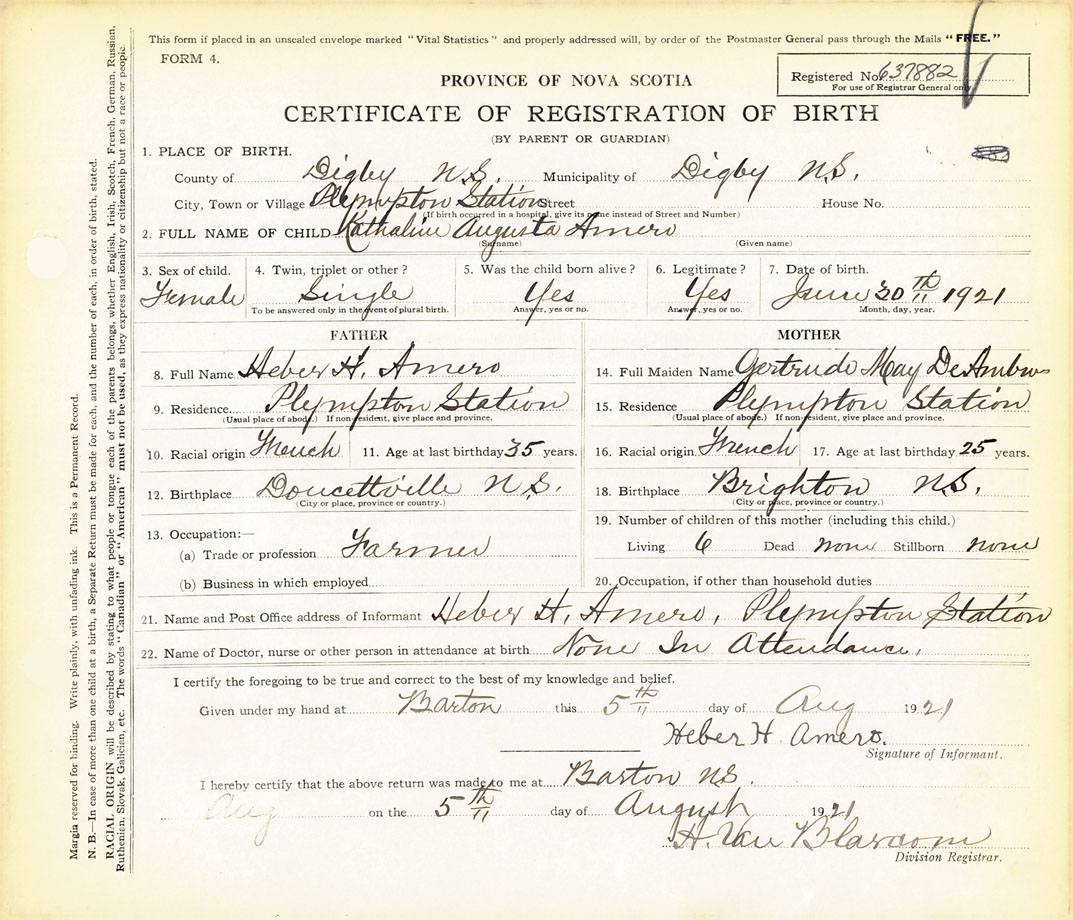Nova Scotia Archives — https://archives.novascotia.ca/vital-statistics/birth/?ID=410261