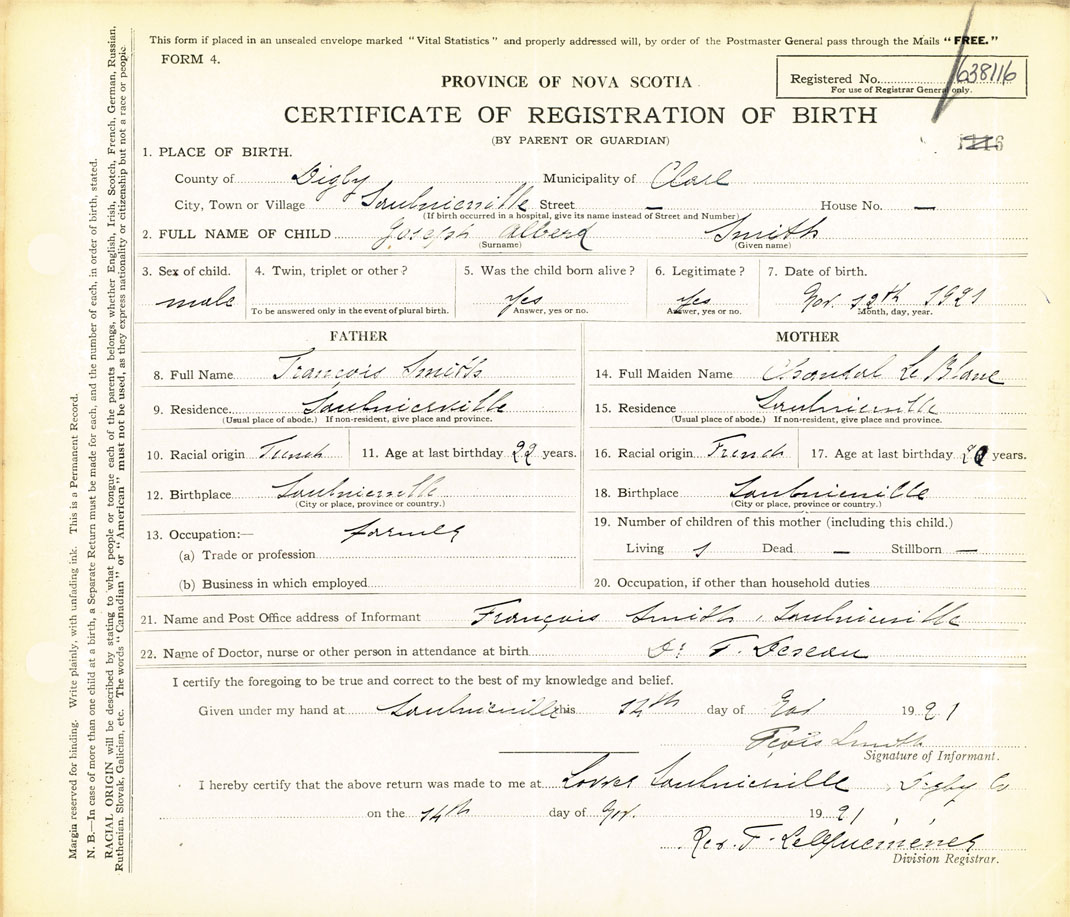 21. Name and Post Office address of Informant Francois Smith Saulnierville