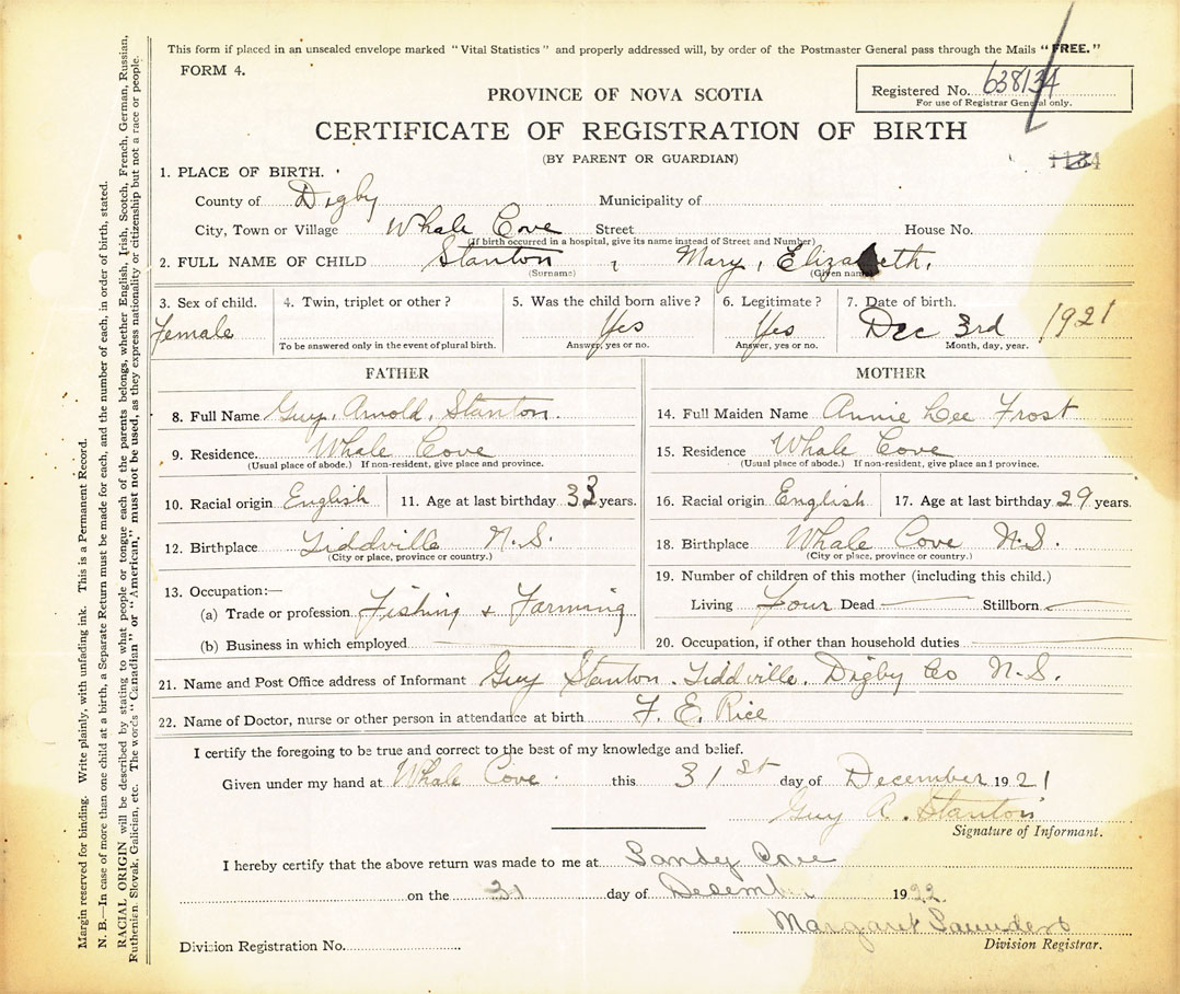 21. Name and Post Office address of Informant Guy Stanton Tiddville, Digby Co
