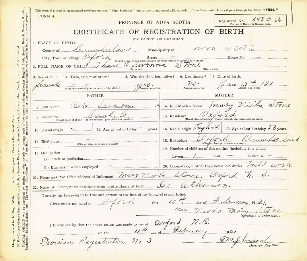 Nova Scotia Archives — https://archives.novascotia.ca/vital-statistics/birth/?ID=410589