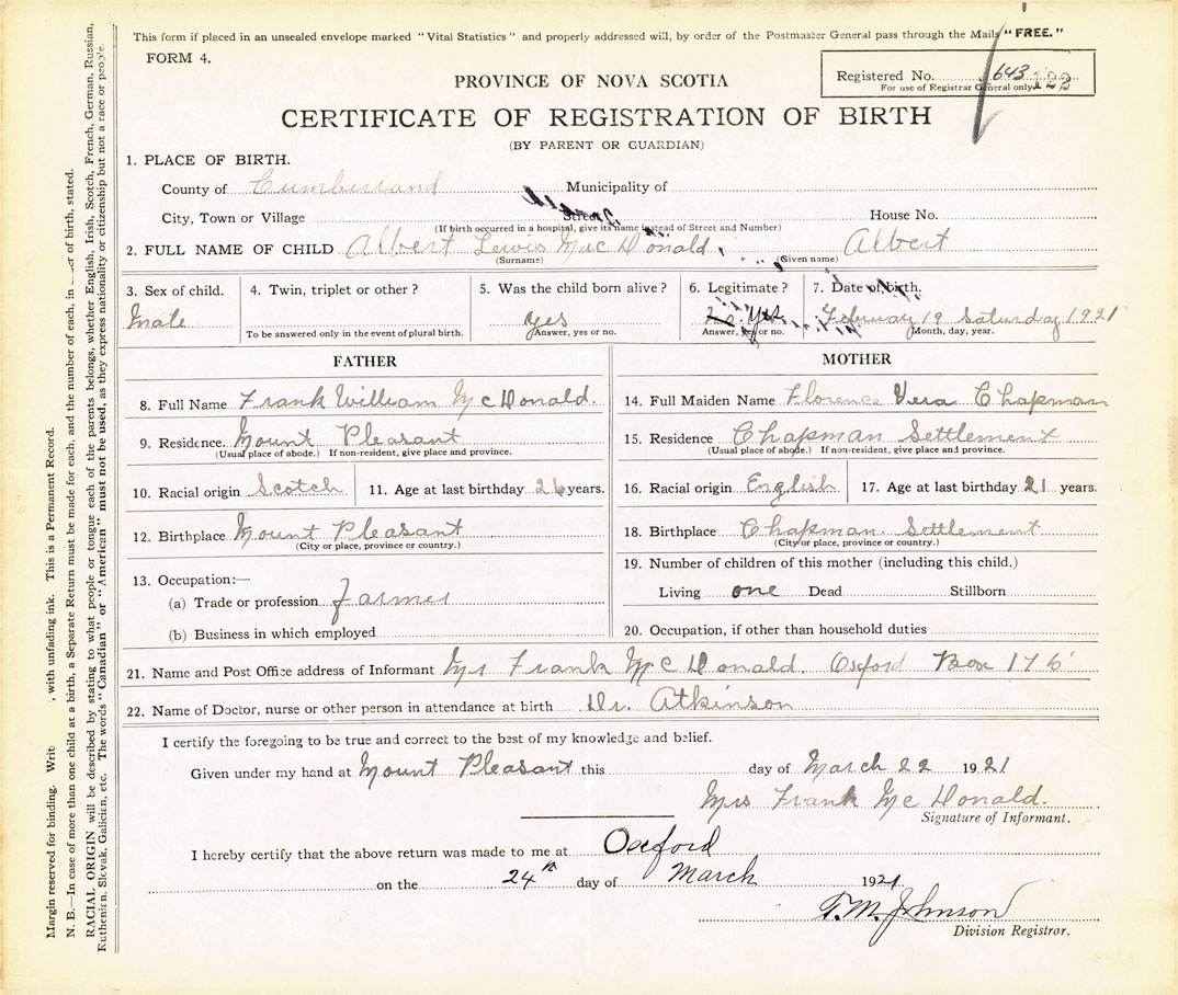Nova Scotia Archives — https://archives.novascotia.ca/vital-statistics/birth/?ID=410667