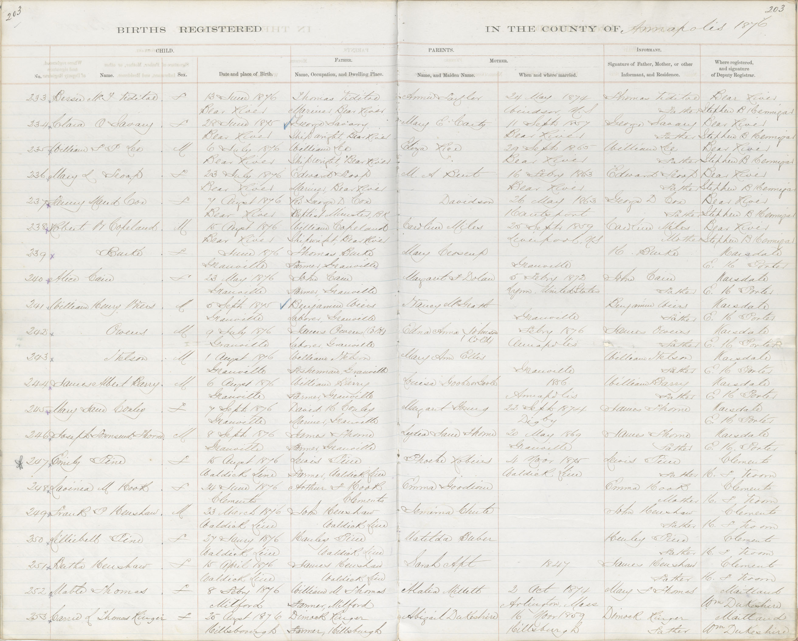Birth Registration: Year: 1876 book: 1801 page: 203 number: 233