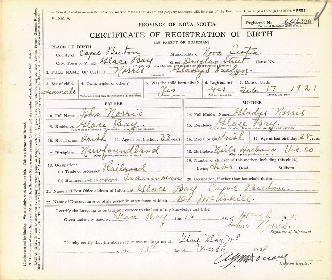 14. Full Maiden Name Gladys Norris