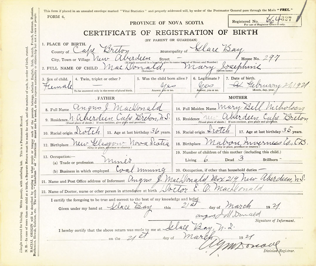 Nova Scotia Archives — https://archives.novascotia.ca/vital-statistics/birth/?ID=411626