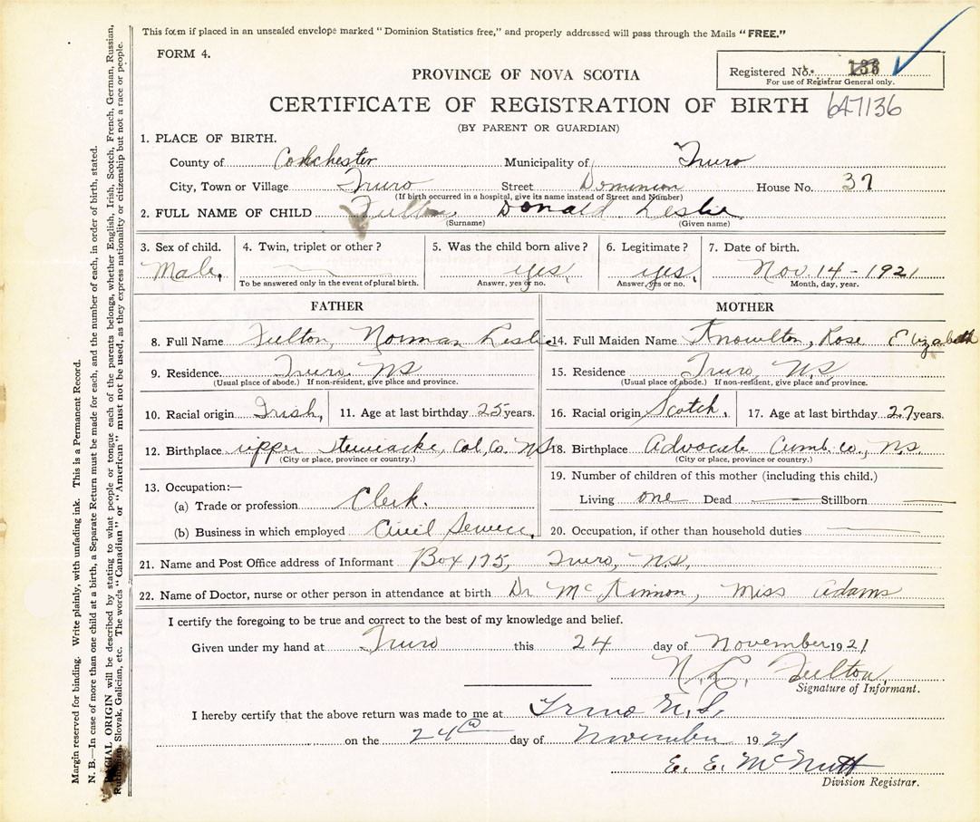 Nova Scotia Archives — https://archives.novascotia.ca/vital-statistics/birth/?ID=411777