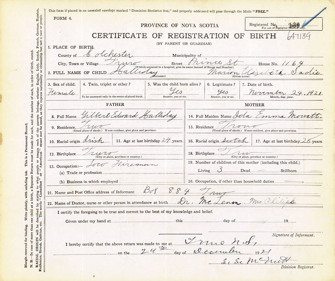 Nova Scotia Archives — https://archives.novascotia.ca/vital-statistics/birth/?ID=411780