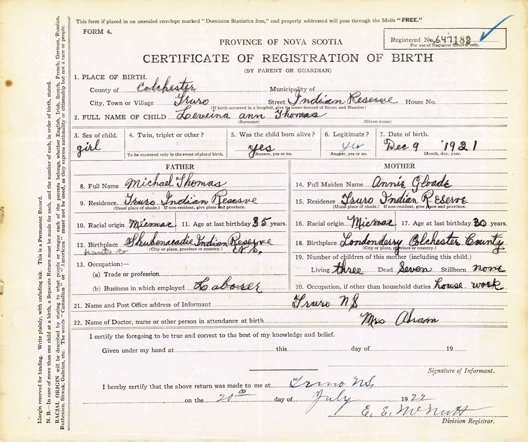 12. Birthplace Shubenacadie Indian Reserve, Hants County