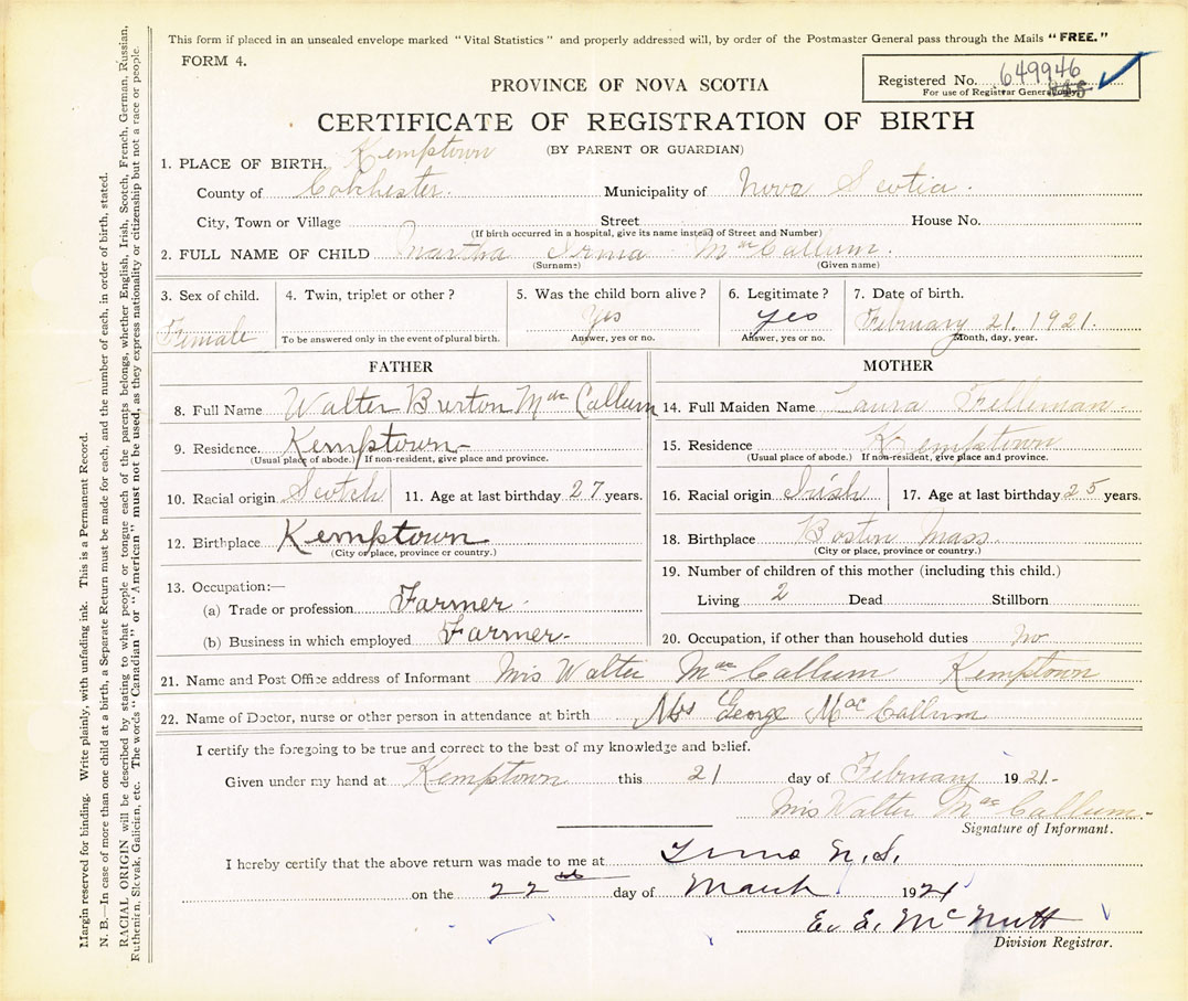 Nova Scotia Archives — https://archives.novascotia.ca/vital-statistics/birth/?ID=411970