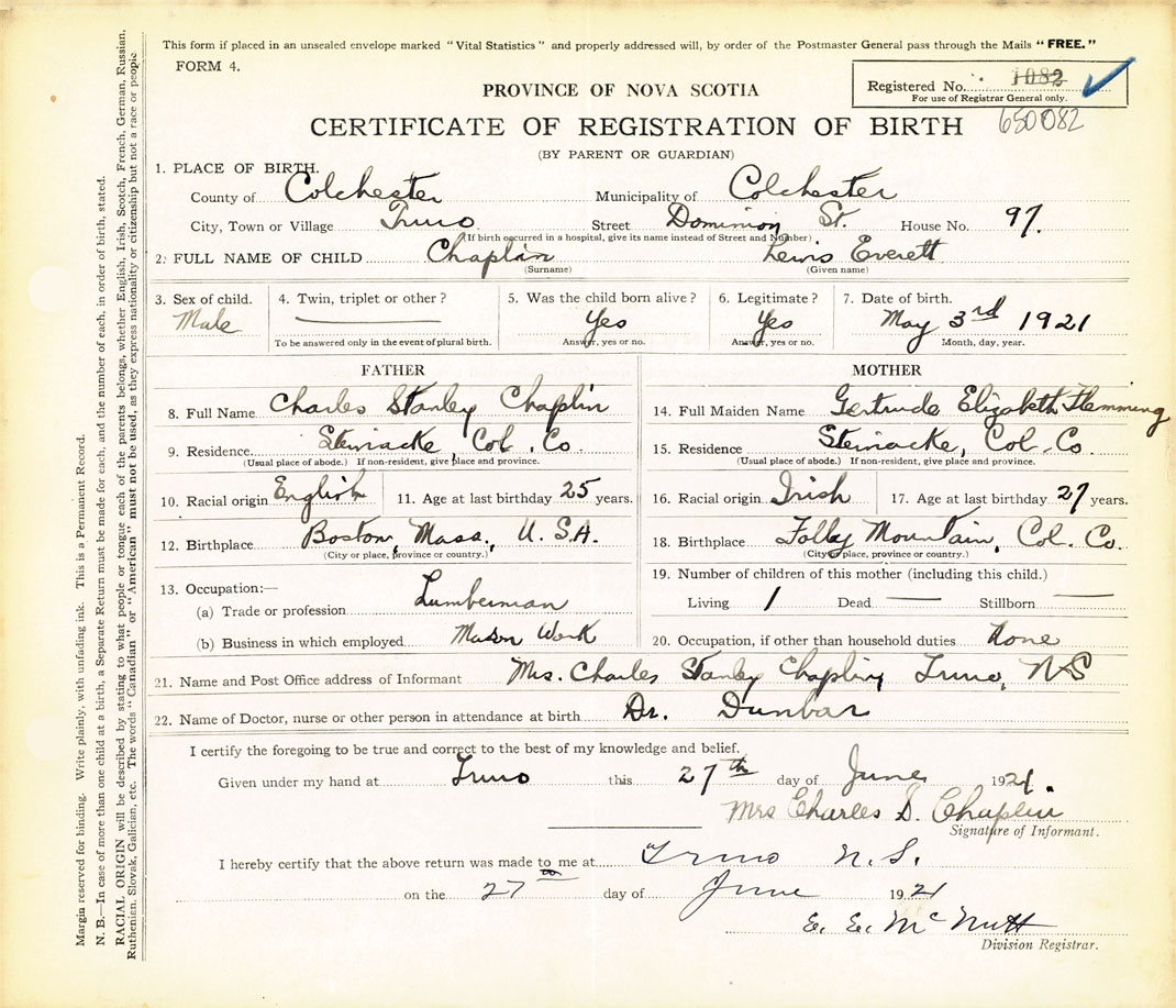 2. FULL NAME OF CHILD Chaplin, Lewis Everett