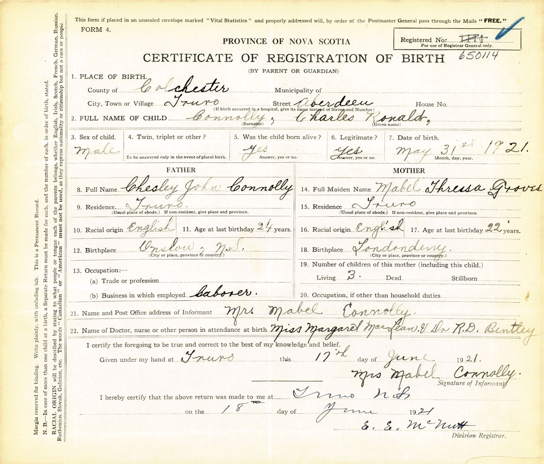 Nova Scotia Archives — https://archives.novascotia.ca/vital-statistics/birth/?ID=412138