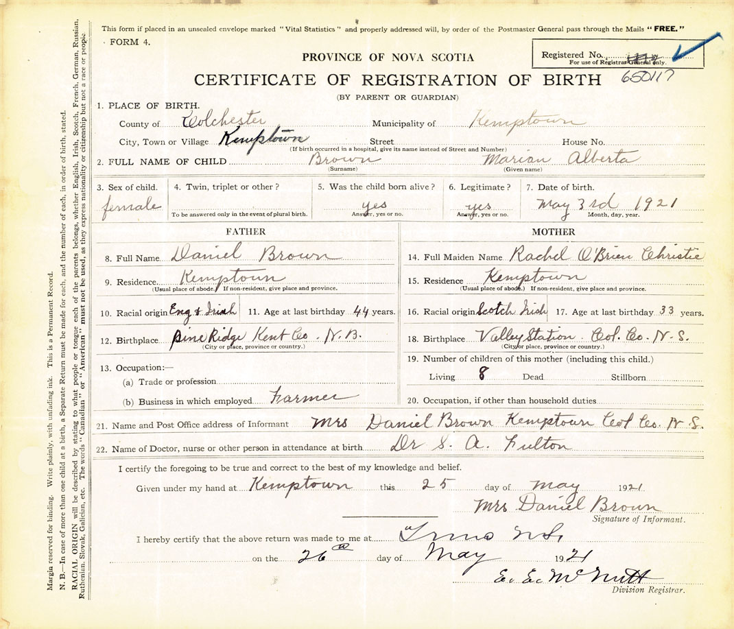 Nova Scotia Archives — https://archives.novascotia.ca/vital-statistics/birth/?ID=412141