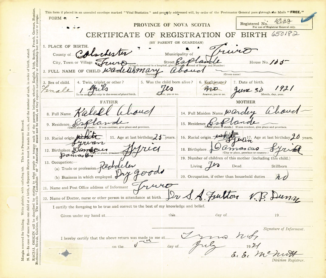 Nova Scotia Archives — https://archives.novascotia.ca/vital-statistics/birth/?ID=412206