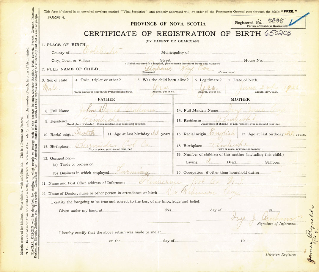 Nova Scotia Archives — https://archives.novascotia.ca/vital-statistics/birth/?ID=412227