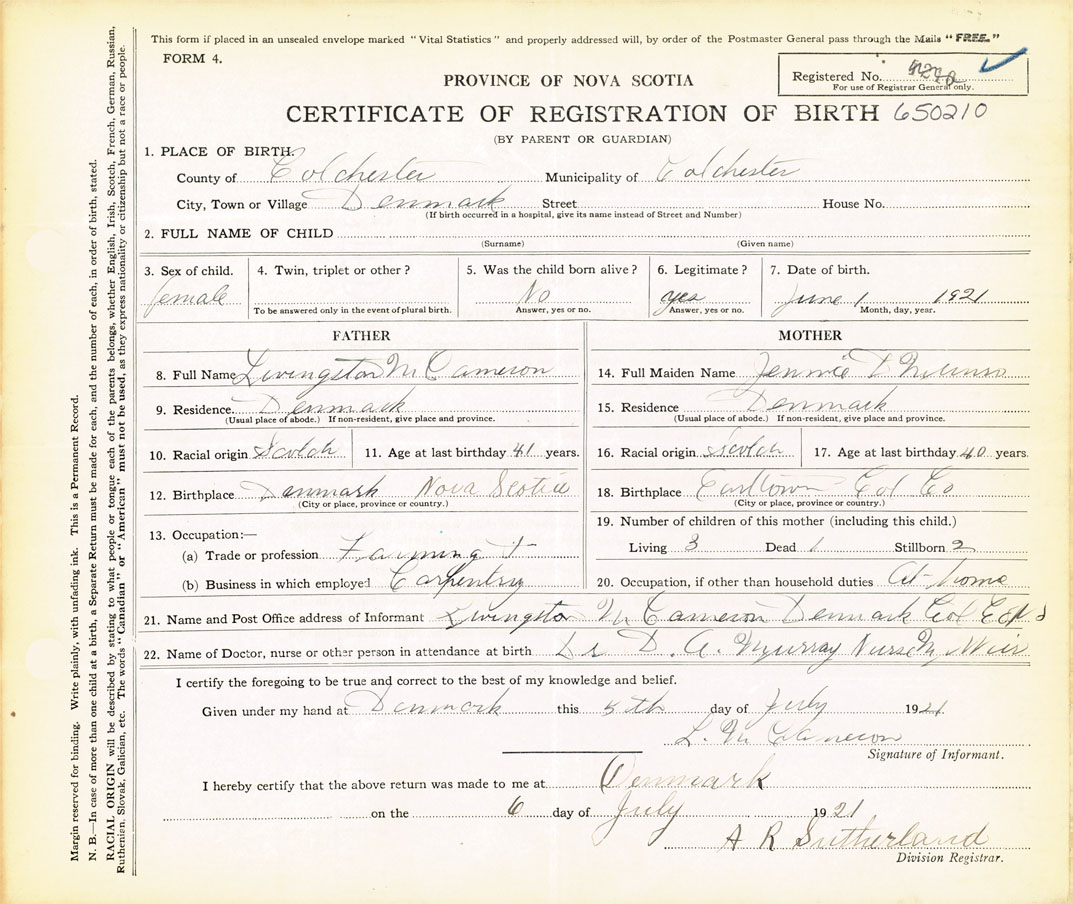 Nova Scotia Archives — https://archives.novascotia.ca/vital-statistics/birth/?ID=412234
