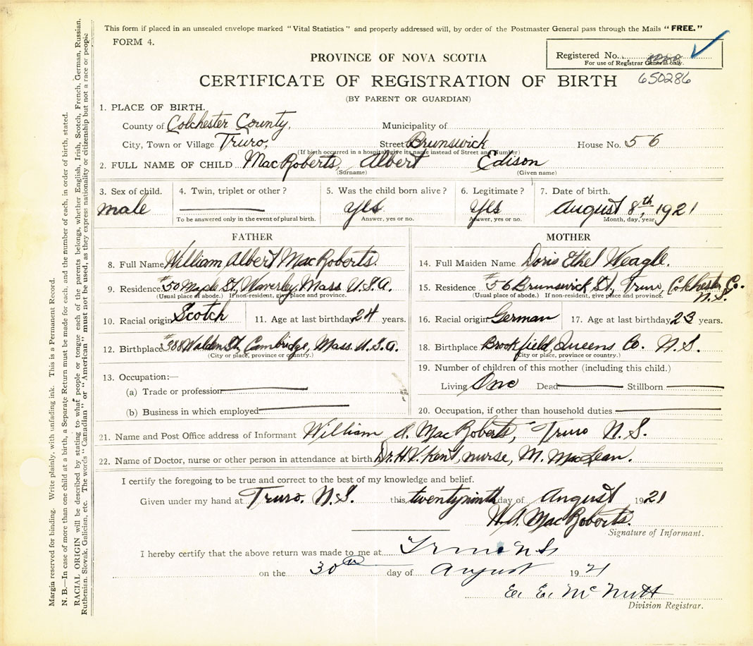 Nova Scotia Archives — https://archives.novascotia.ca/vital-statistics/birth/?ID=412310