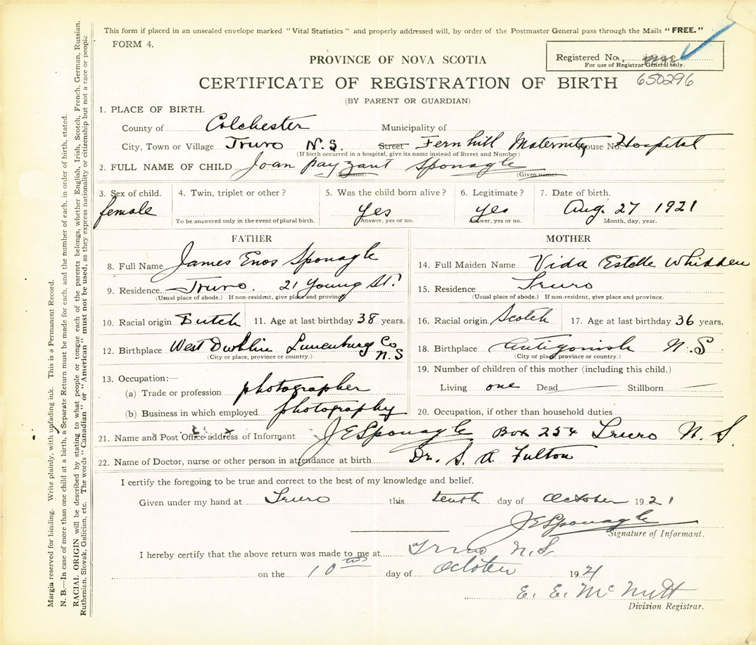 Nova Scotia Archives — https://archives.novascotia.ca/vital-statistics/birth/?ID=412320
