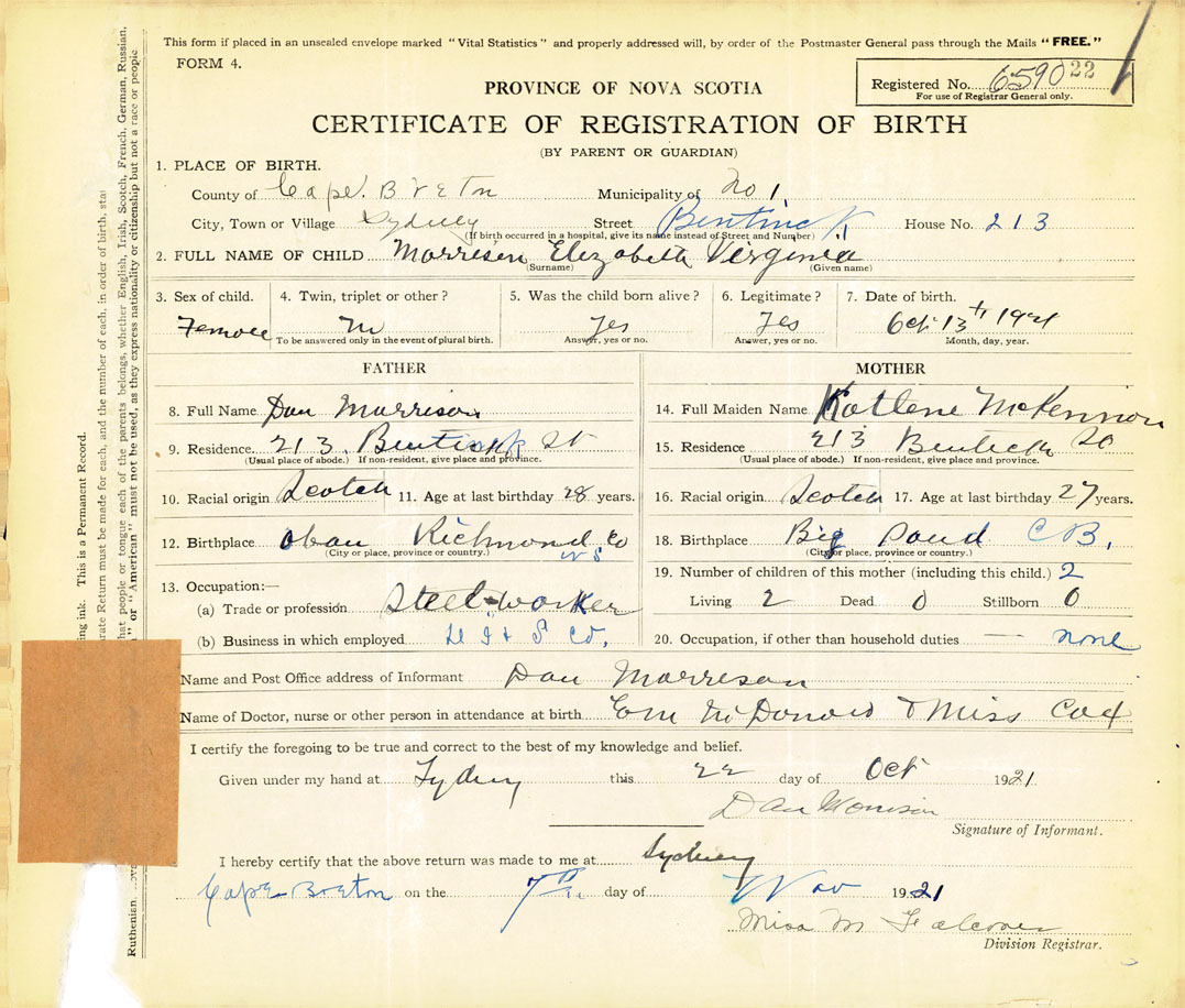 Nova Scotia Archives — https://archives.novascotia.ca/vital-statistics/birth/?ID=412389