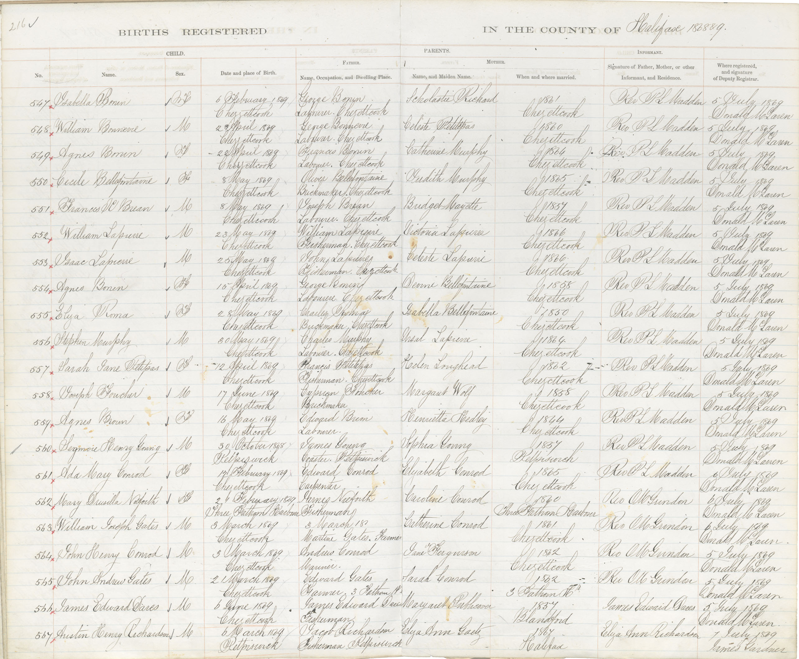 Birth Registration: Year: 1869 book: 1809 page: 216 number: 547