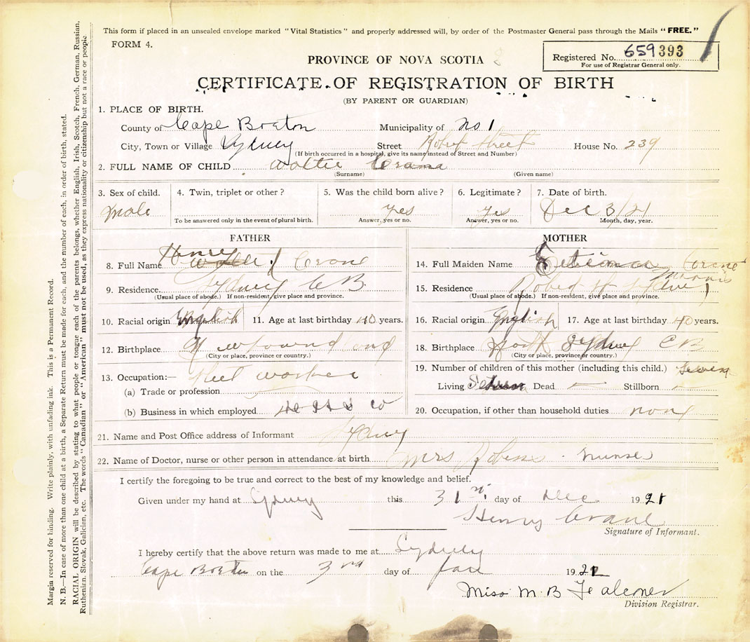 18. Birthplace North Sydney, CB