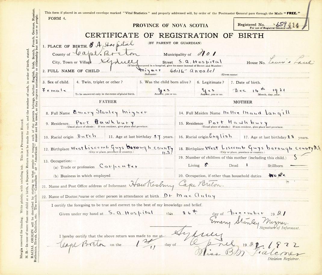 Nova Scotia Archives — https://archives.novascotia.ca/vital-statistics/birth/?ID=412780