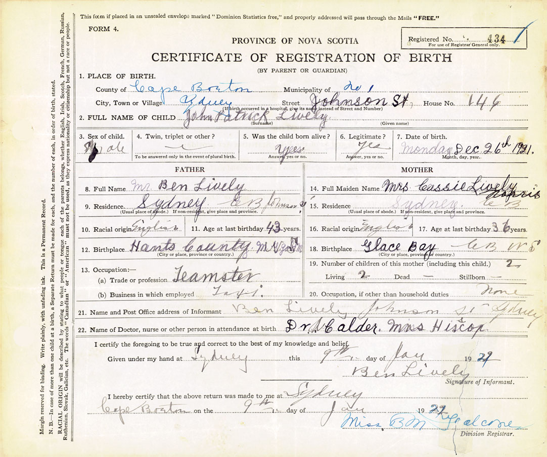 18. Birthplace Glace Bay, CB