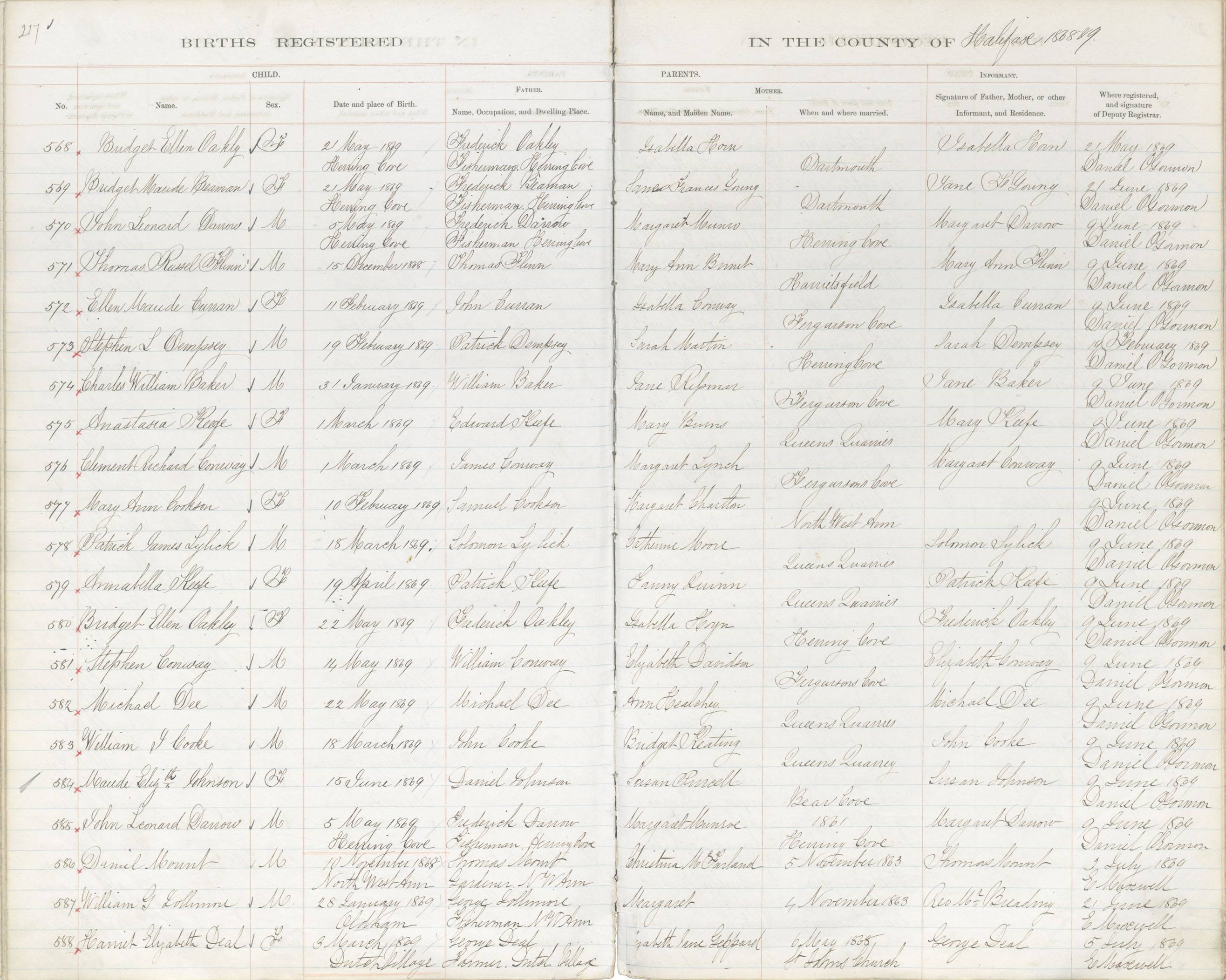 Birth Registration: Year: 1869 book: 1809 page: 217 number: 568