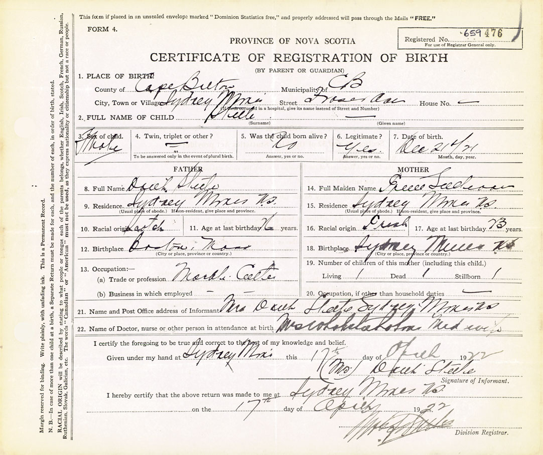 21. Name and Post Office address of Informant Sydney Mines