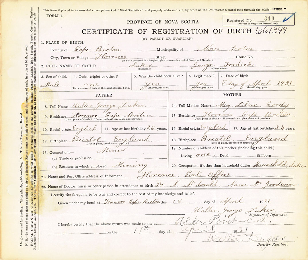 8. Full Name Walter George Luker