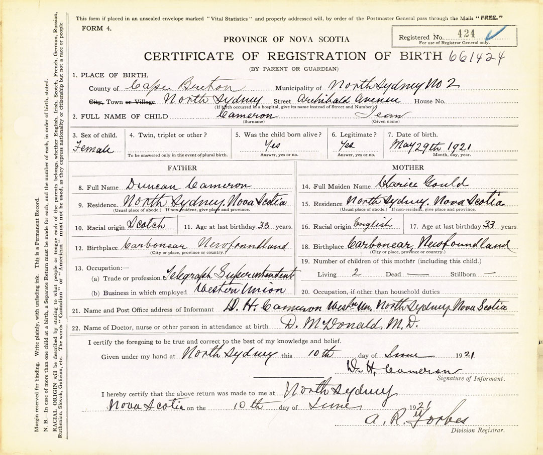Nova Scotia Archives — https://archives.novascotia.ca/vital-statistics/birth/?ID=413397